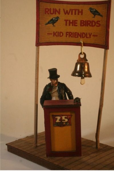 Not knowing of the existence of a twin brother, each boy began living their separate lives in their own parallel universe. As the years passed Alfred went on to study film making while Alfred took over his adopted parents traveling petting zoo at their passing. Alfred officially entered the entertainment business years later with his first feature motion picture and at the same time Alfred also entered the entertainment world with his now fine-tuned petting zoo exclusively featuring trained crows that could be held, petted, hand fed and would speak words and phrases (I think you know where this is going).