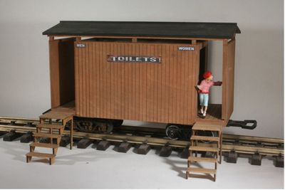 Not the most interesting subject to build, but an essential one! The traveling shows supplied these facilities for the crew and public. During the earlier years, the carnivals always setup in open fields just outside of the towns. These pre-fab restrooms were just large outhouses placed over quickly dug septic holes. As my traveling carnival is built on rail cars, so must be the ‘facilities’.
