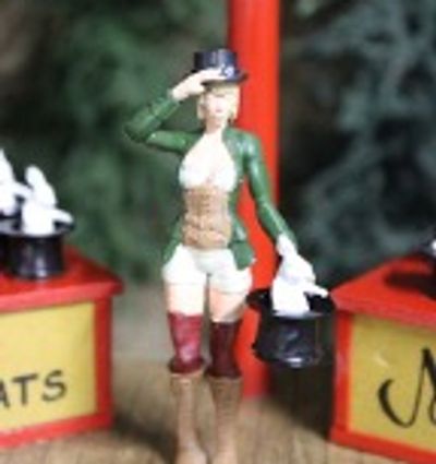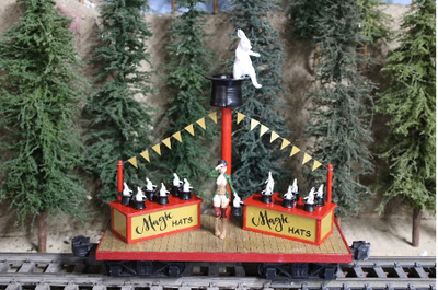 Enter NIECE, dressed in true carnival garb and top hat, she steps forward to demonstrate the MAGIC HAT toy......Audience quiets......with the rabbit hidden in the hat, NIECE slowly waves her hand over the hat and softly saying......ABRA-KADRABRA......APPEAR MAGIC BUNNY. Pressing the hidden release button, the rabbit pops up to the amazement of a cheering crowd. It was just a toy......the crowd knew that......but it was the presentation......insuring the sale.